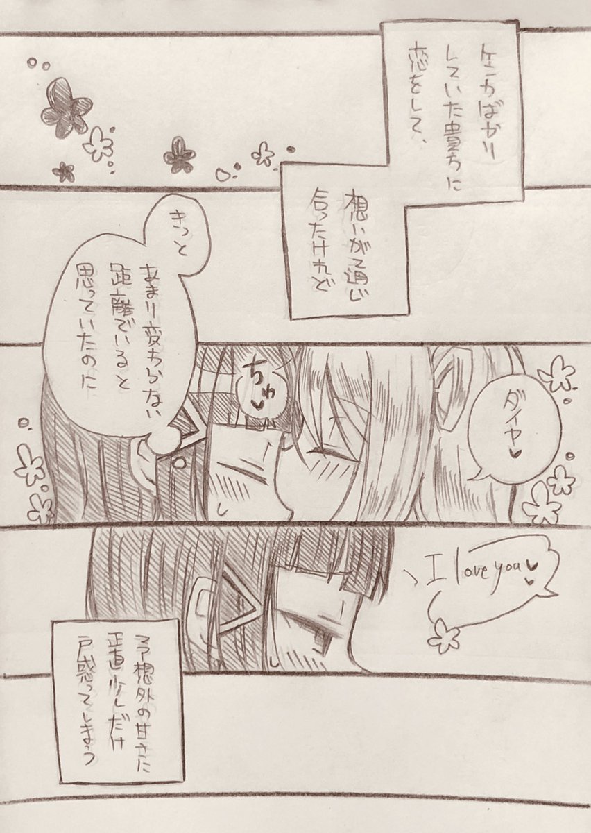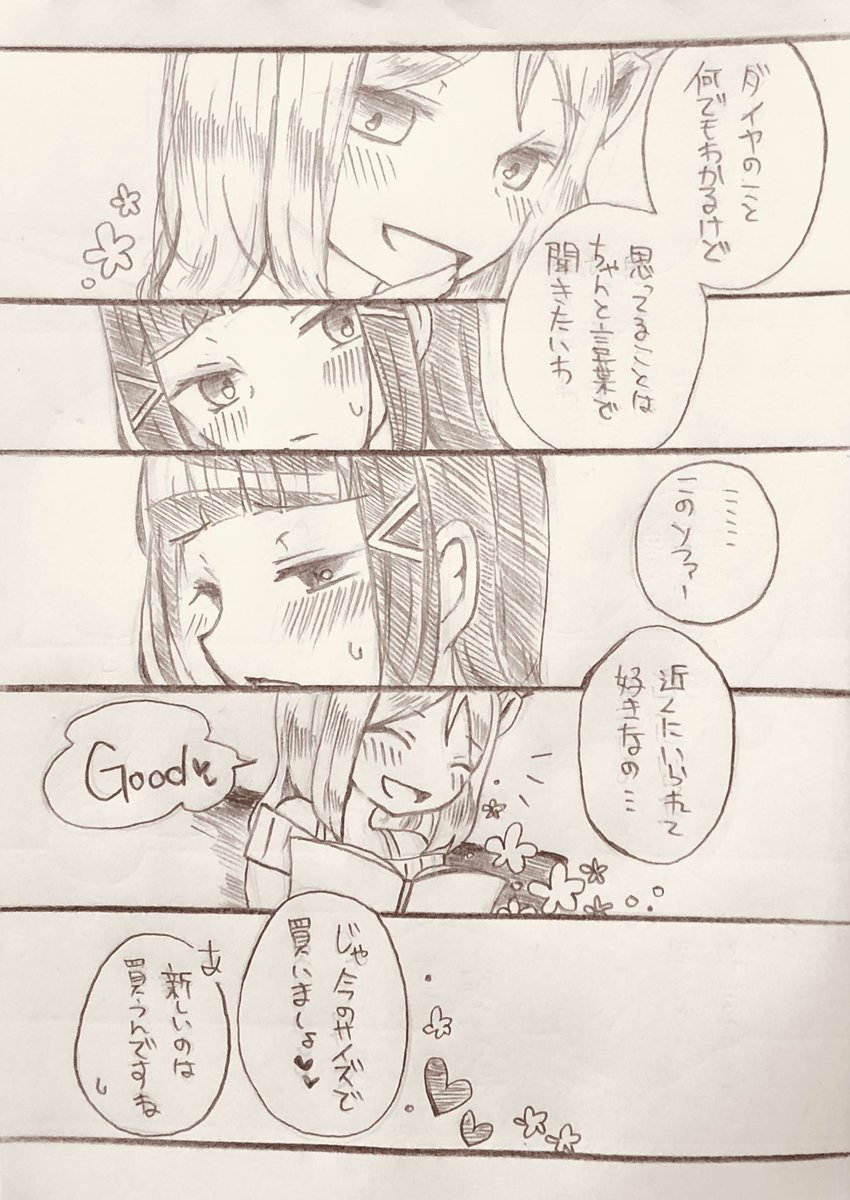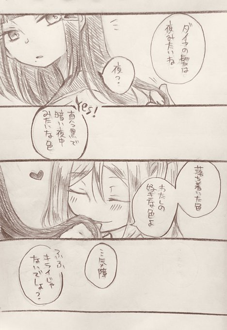 7月分納税。 付き合って間もないダイマリちゃんは最初から恋人扱いで甘やかすタイプの鞠莉さんと距離感掴めなくて恥ずかしくて困るダイヤさんって感じだと良いなっていう願望ぶち込んだ。 #ダイマリ広報部 #毎月5日はダイマリ記念日