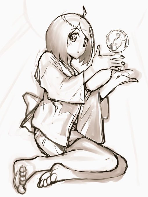 4 9 本日のラスト落書き(下描き?) 久しぶりの月火ちゃん 完成版まで色々直す場所あり〼 23/06/05 01:42
