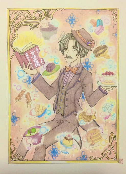 14 38 ようやくできました。大遅刻ntm先生お誕生日お祝いイラスト せっかくなので大好きな甘味もたくさん添えてあります。 先生おめでとう! 19/02/23 10:50