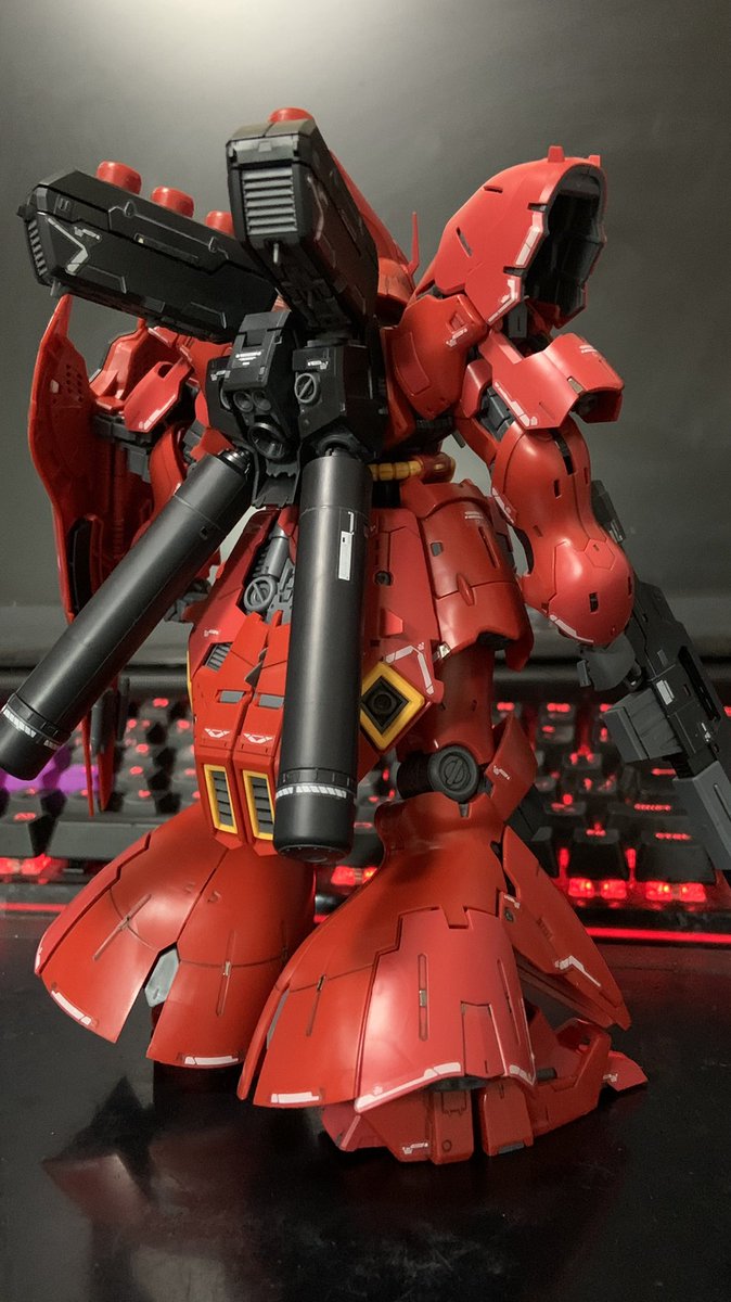 RGサザビー、墨入れ&デカール完了ー!! プラモを買うようになって一番見る目が変わったというか、一番好きになった機体なだけあってめちゃくちゃカッコ良い!!! そしてやっぱり対にするならノーマルのニューガンダムが欲しくなる……!!! #ガンプラ