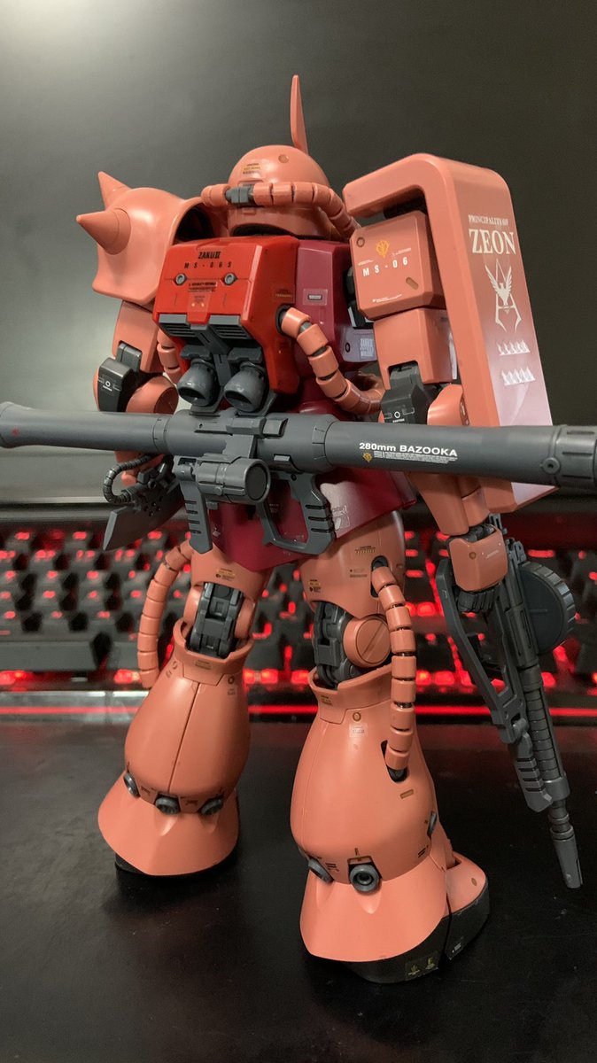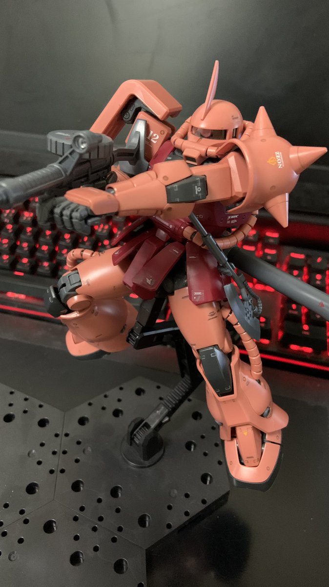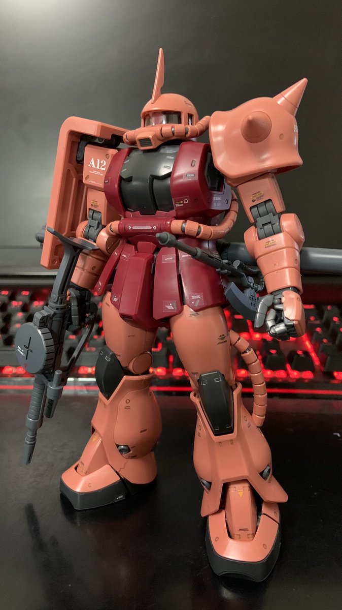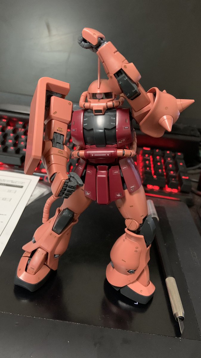 MGシャア専用ザク完成ー!! シンプルなデザインに細かいディテールがとても映えますねー! #ガンプラ