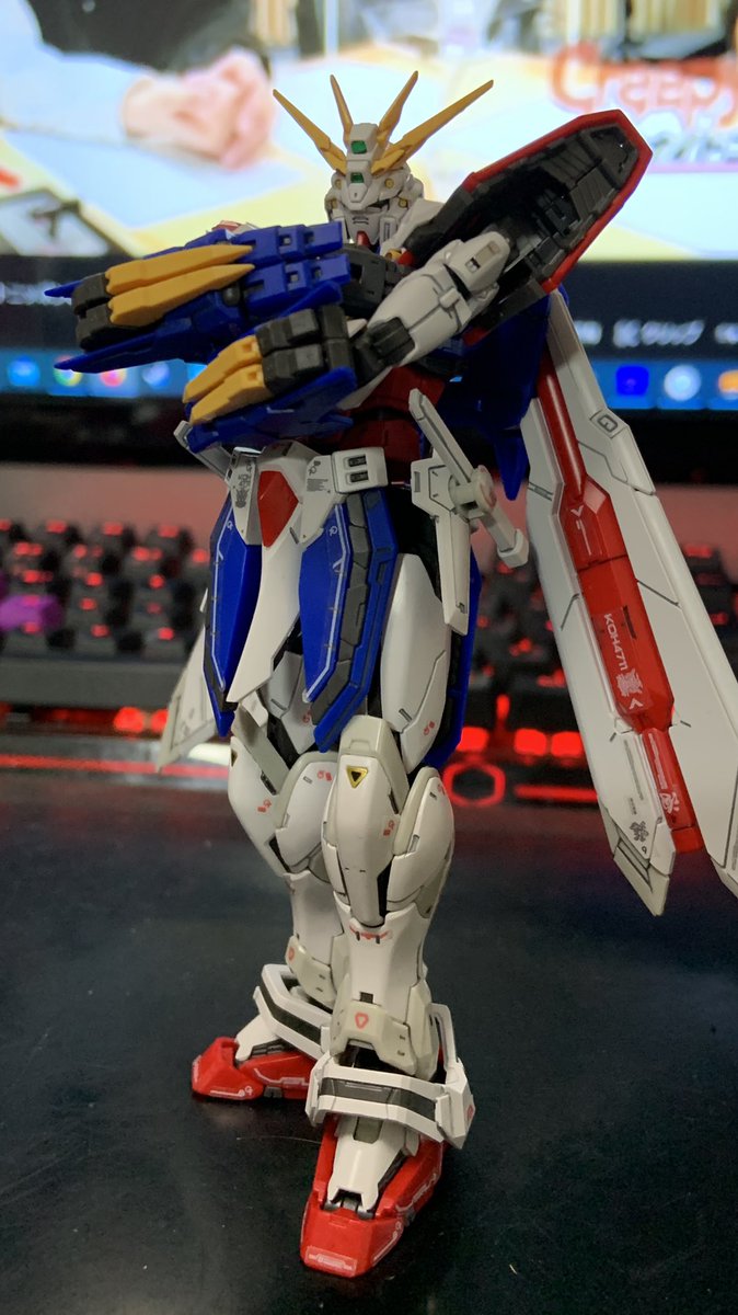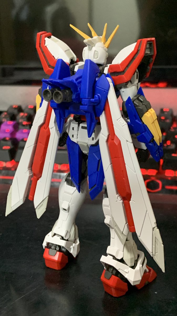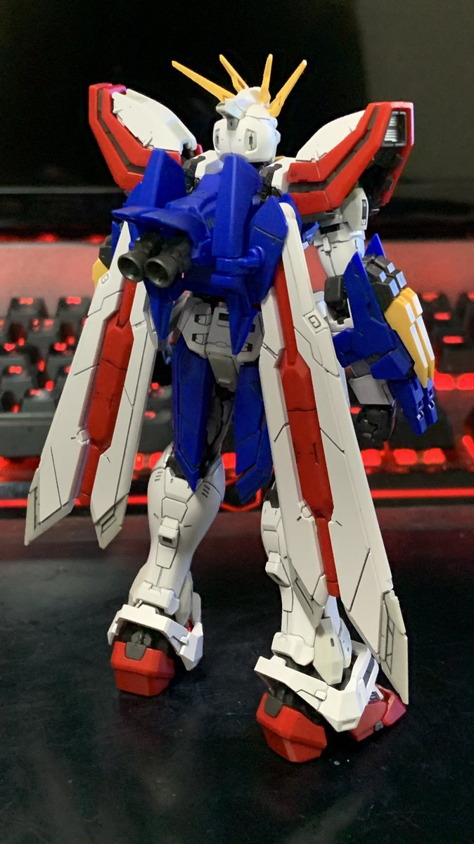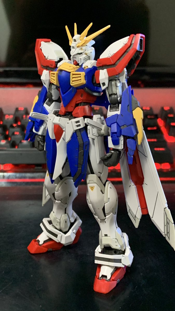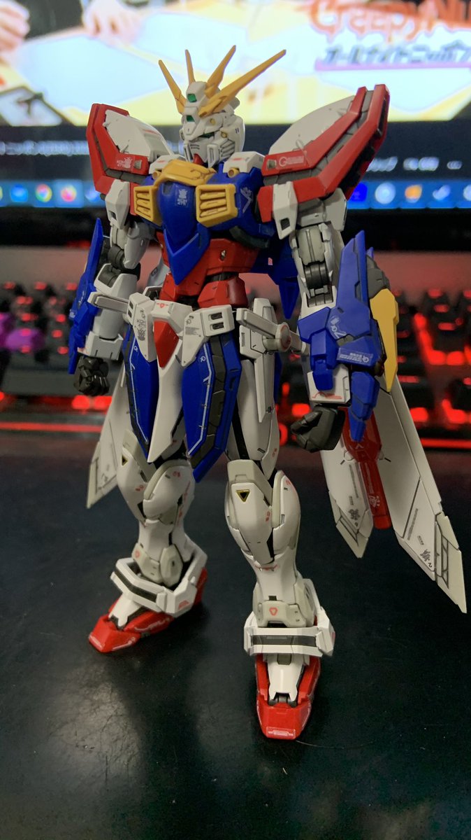 1 12 RGゴッドガンダム素組み完了ー!! 可動域が広すぎてアクションフィギュアを触ってる感じがします笑 あとめっちゃ小さい!! #ガンプラ 22/08/15 00:49