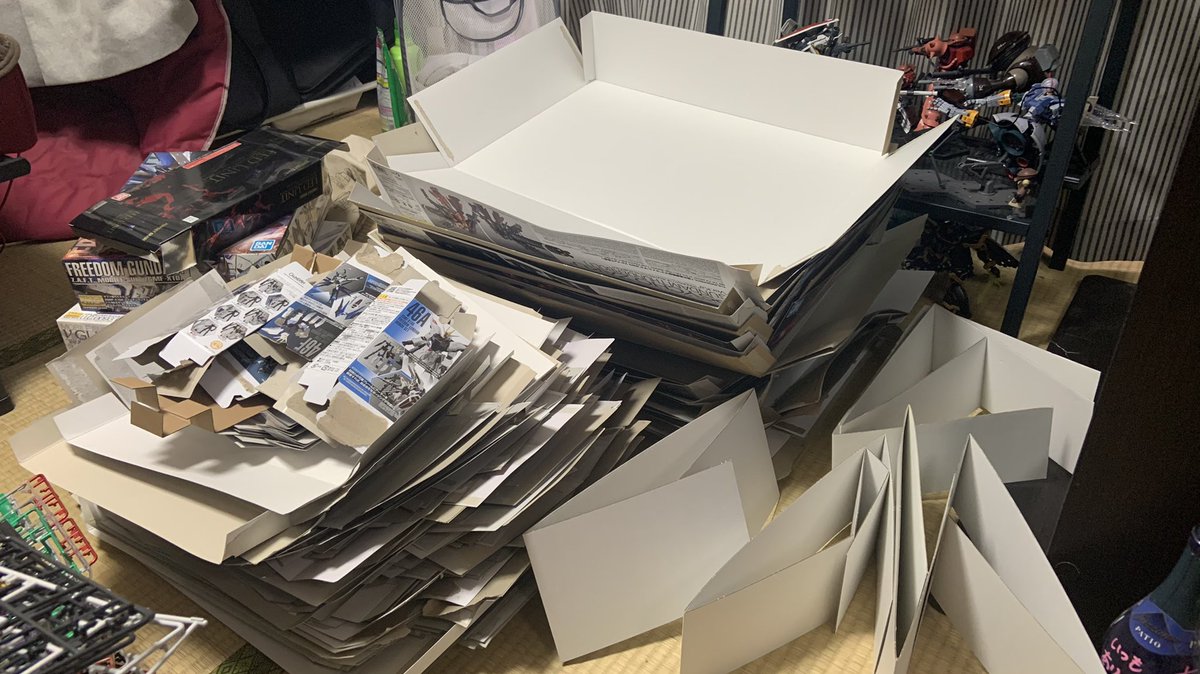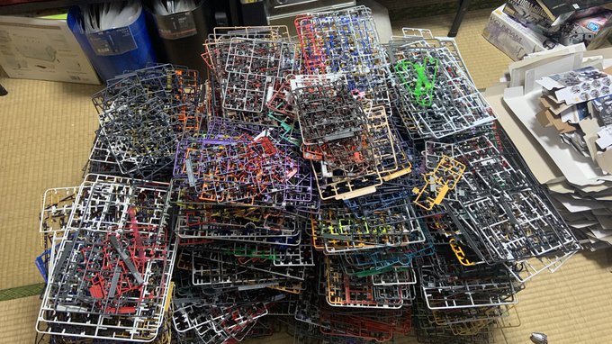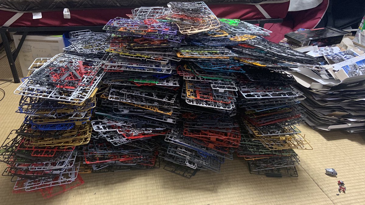 プラモの箱分別完了ー!! 4枚目の余剰パーツのランナーがこんなに出るのは誤算だった…… #プラモデル #ガンプラ