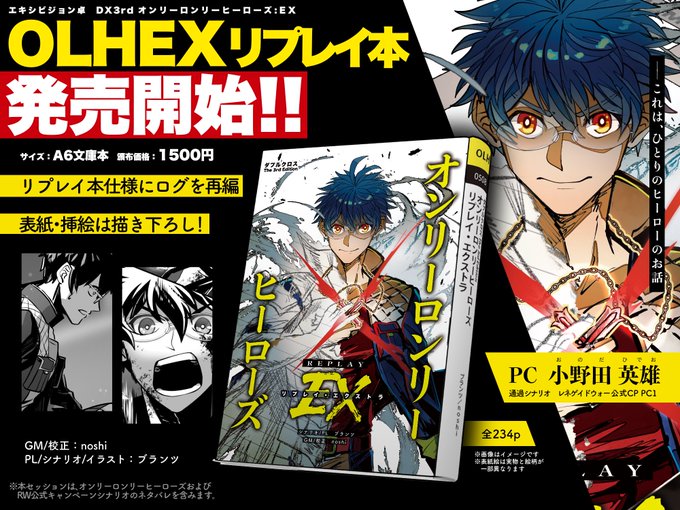 【増刷決定】 DX3rd「オンリーロンリーヒーローズ リプレイ・エクストラ」 昨日発売したら数時間で在庫完売してしまったので さすがに追加生産することにしました!!! 在庫復活までしばしお待ちください…!🙇♂️❄ (まさかこんなに早く完売するとは…) twitter.com/buranntu/statu…
