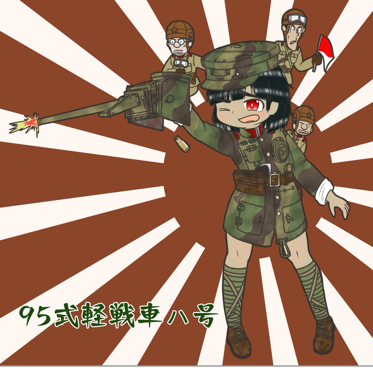 #九五式軽戦車 の擬人化を描きました! 最近里帰りしましたね。迷彩もそれがモデルです #帝国陸軍 #戦車 #イラスト #ミリタリー