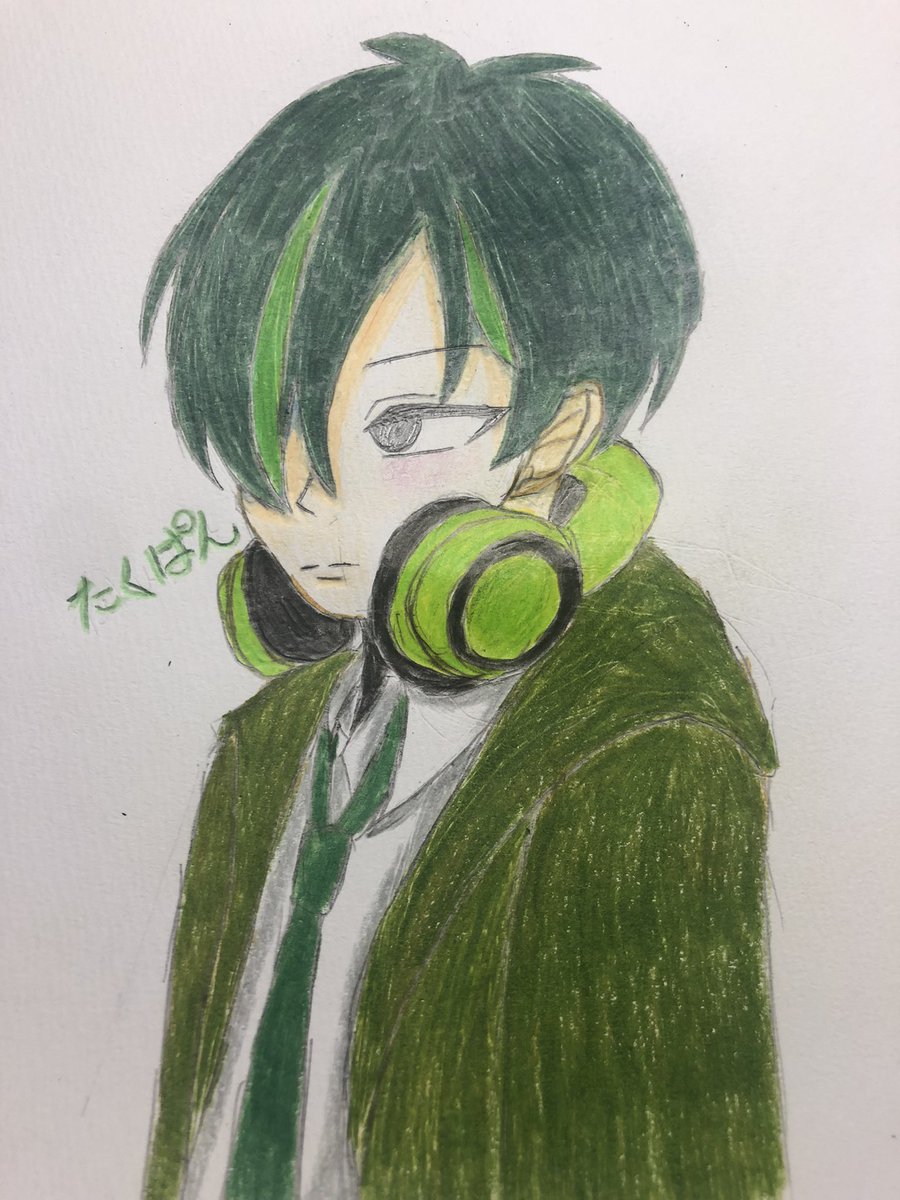 ⚔️🎧 久しぶりの色鉛筆描き(^^♪ #メメリ絵 #たくぱんへお届物
