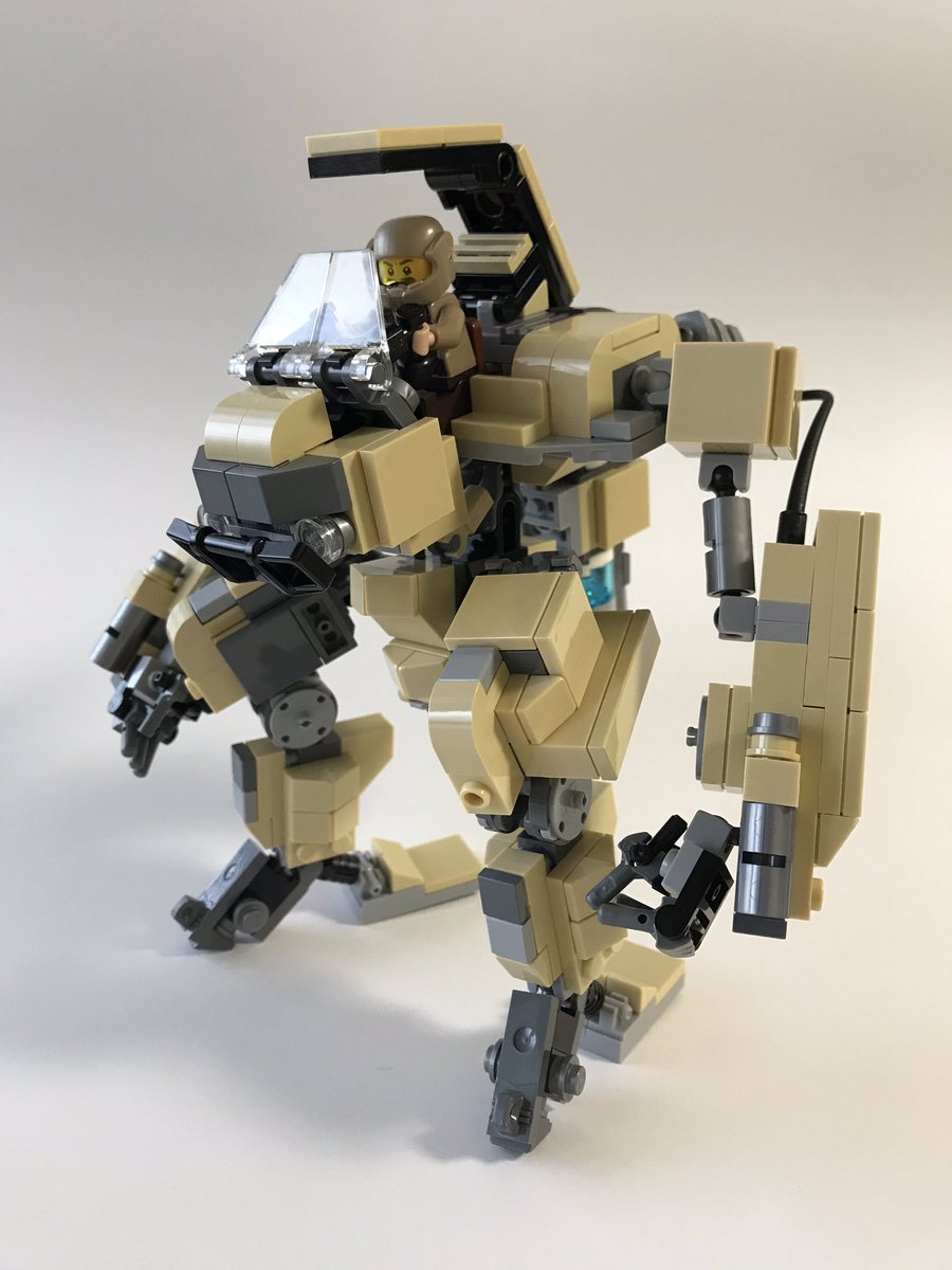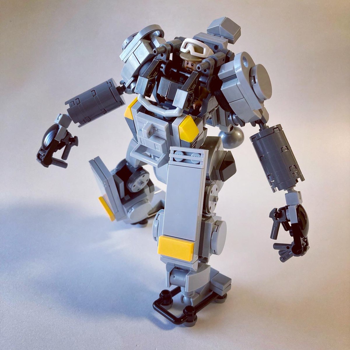 ミニフィグ乗りのパワードスーツを作ってみました。SW反乱軍が基地建設に用いた機体というイメージです。小さめサイズですが細部にこだわりました。#lego #レゴ #レゴロボ #レボシェルコン
