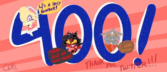 THANK YOU SO MUCH FOR 400 FOLLOWERS!!! I had to draw this as quick as I could because: I love and appreciate every single one of you! You all are amazing people, I love talking with you and I can’t wait to draw, tweet or meme more stuff for you ❤️ #HelluvaBoss #ArtistOnTwitter