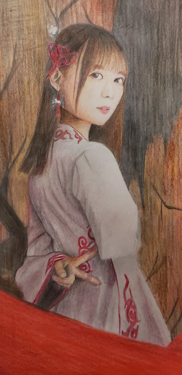 1 5 4ヶ月ぶりくらいに絢音ちゃんを完成させたけど、絶妙に似てなくて萎える #色鉛筆 22/09/01 14:53