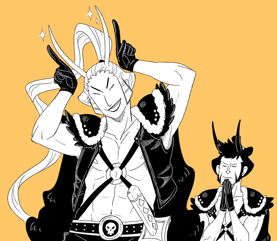 I was.. quickly drawing Sasaki to get the hand on drawing him and then Kyoshiro just popped up next to him 💃