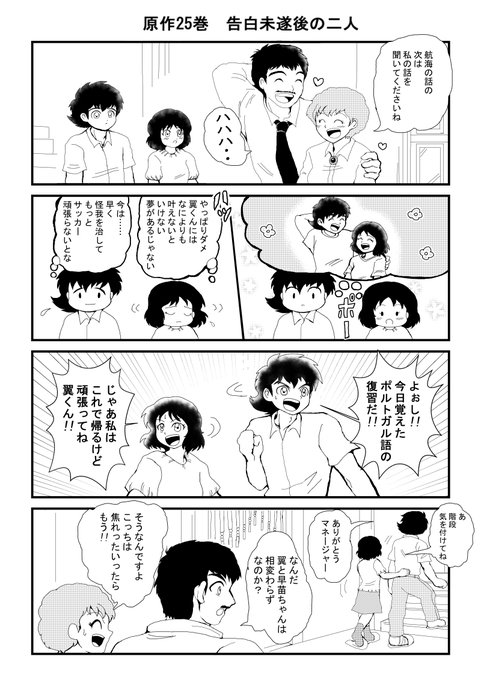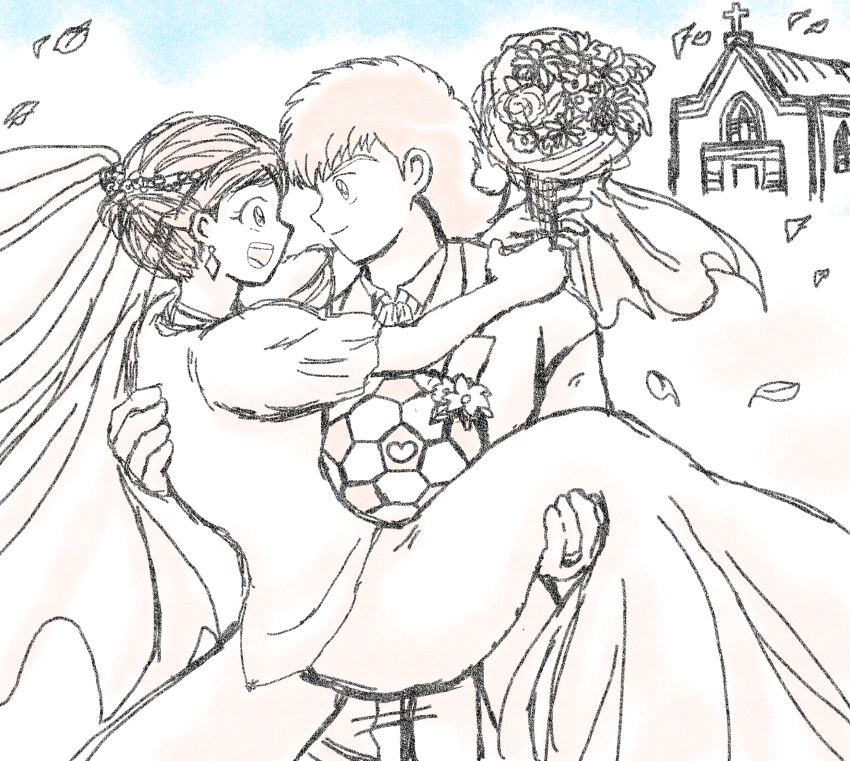 「キャプテン翼マガジン」毎号楽しみに拝読してます。 「サッカー選手とサポーター(応援団長)」な翼くんと早苗ちゃんが大好きで描きました。 高橋先生とキャプテン翼をこれからもずっと応援しています! #キャプテン翼マガジンイラスト投稿