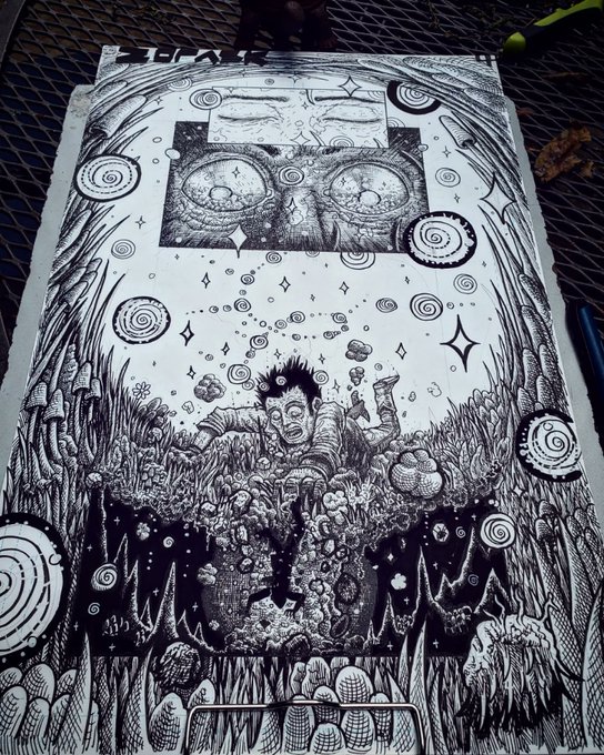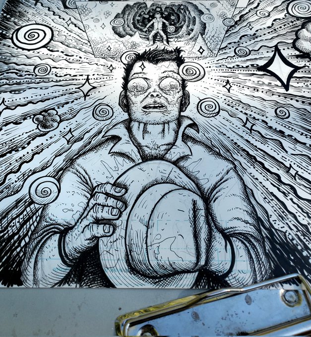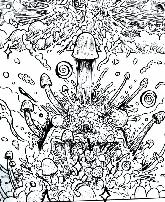 Some pages take longer than others #zorask #horrorium #albinofarm #shrooms #Inktober #notober