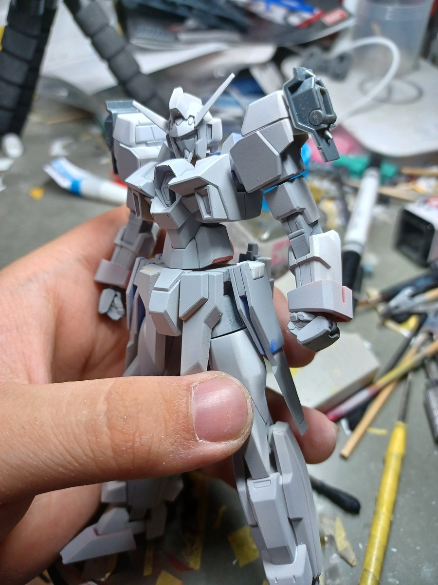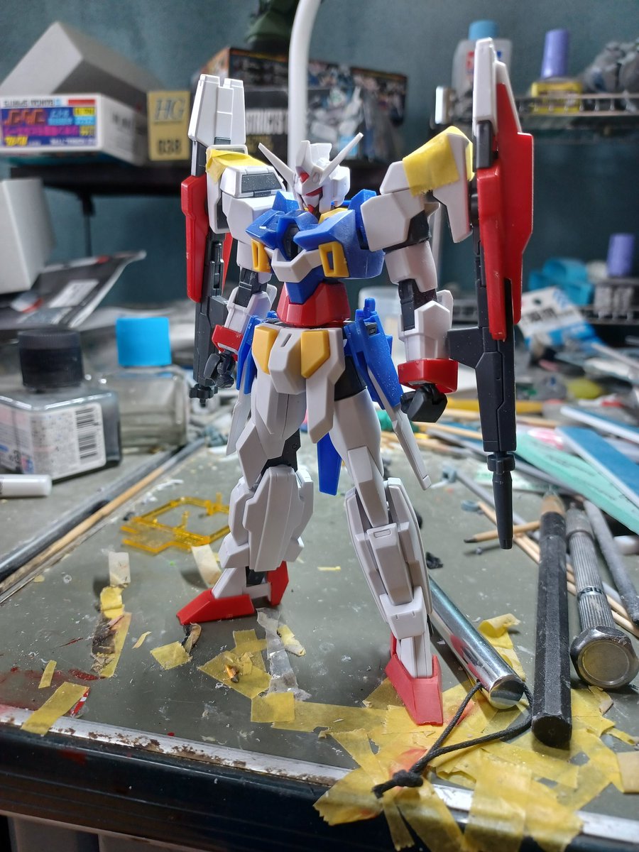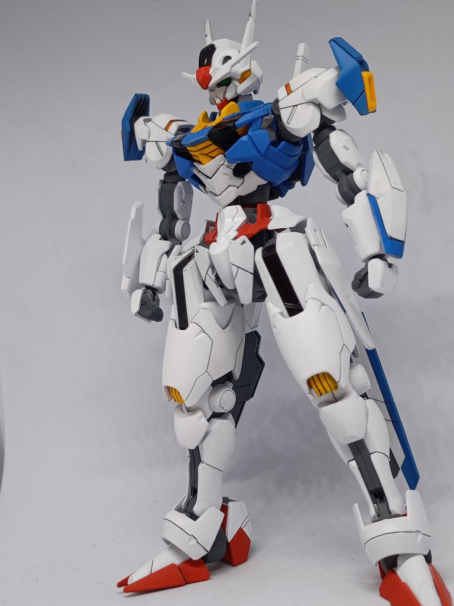 HG エアリアルガンダム 完成しました(*^^*) 改修点胴体1mm延長 足首2mm延長 顔をアニメ寄りに改修点、肉抜き埋め #ガンプラの画像貼るとRTされると聞いて #ガンプラはどんな自由な発想で作ってもいいんだ