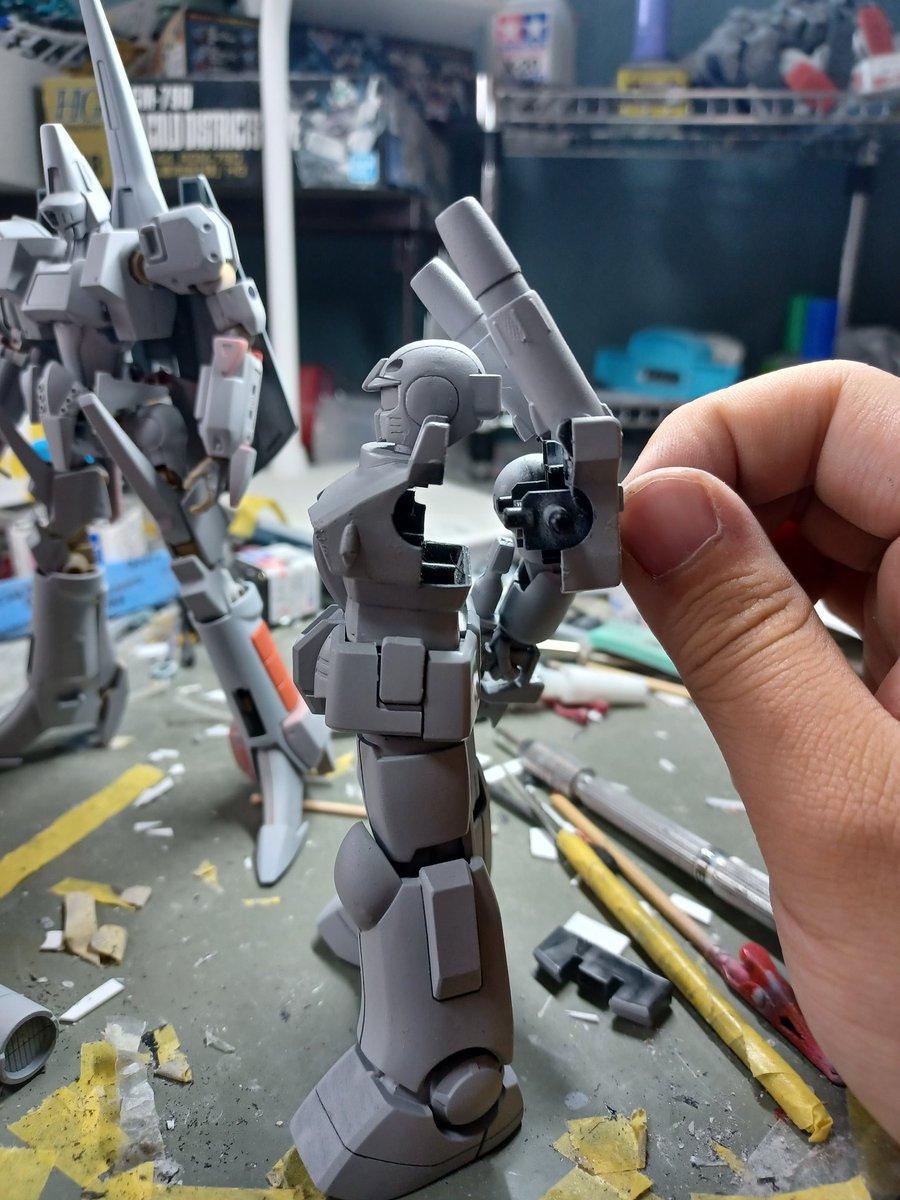 お腹の凸をパテで大きくしてみた 元の百式と比べたらだいぶマッチョになりましたね。ハンドパーツはおゆまるで複製したやつに交換✌️ #ガンプラ好きな人と繋がりたい #ガンプラの画像貼るとRTされると聞いて