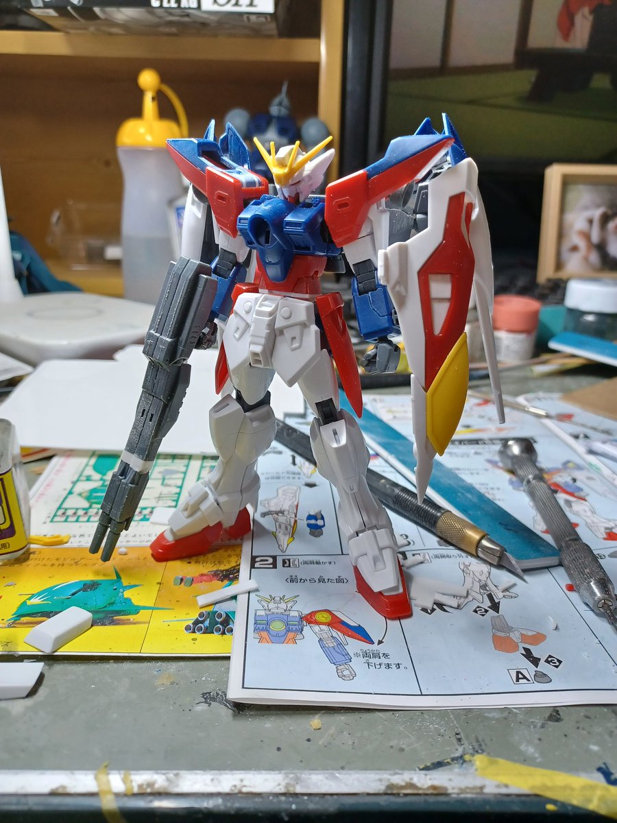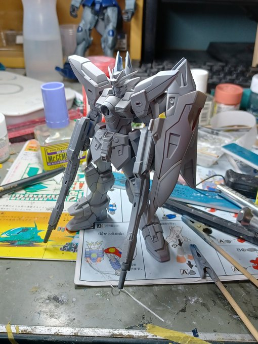 ちょっと気になった部分を改修した。 ヒンジの位置を変更したのと方の可動部を 接着して無可動に羽用のアームの長さも調整しなきゃだけどそれはまた明日 プロポーションは胴体で1ミリ延長して バスターランチャーを3ミリ延長した #ガンプラ好きと繋がりたい #ガンプラの画像貼るとRTされると聞いて