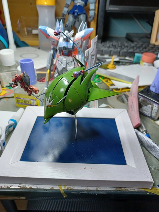 旧キットリ・ガズィ完成 この角度から見ることだけを考えて作ったのでこの画角のみw写真で見るとなんか微妙ですが案外気に入ってます👀旧キットコーナーも豪華になってきました✌️ #ガンプラ旧キット #ガンプラ好きな人たちと繋がりたい #ガンプラの画像貼るとRTされると聞いて