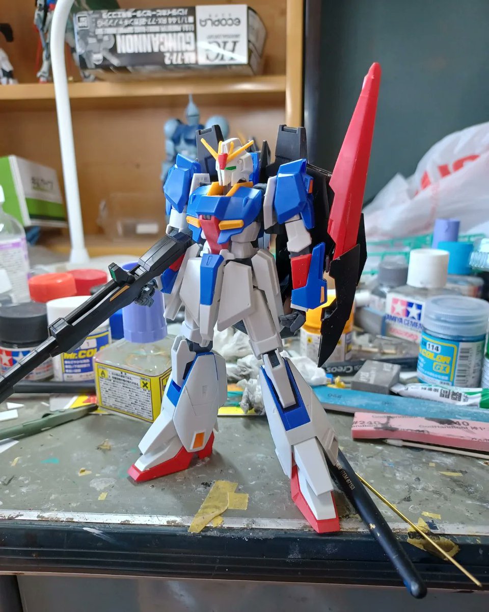 HG Zガンダム完成👏👏👏 青色にこだわりました🤔赤は富野由悠季の赤で(*^^*) #ガンプラ好きな人と繋がりたい #ガンプラの画像を貼るとRTされると聞いて #ガンプラはどんな自由な発想で作ってもいいんだ #ガンプラは自由だ