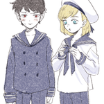 44 228 #dip 服装変えたら誰だかわからなくなった・・・。ピップはセーラー似合うぞ!って思って描いて、ダミアンにも着せてみた・・。 21/03/09 03:06