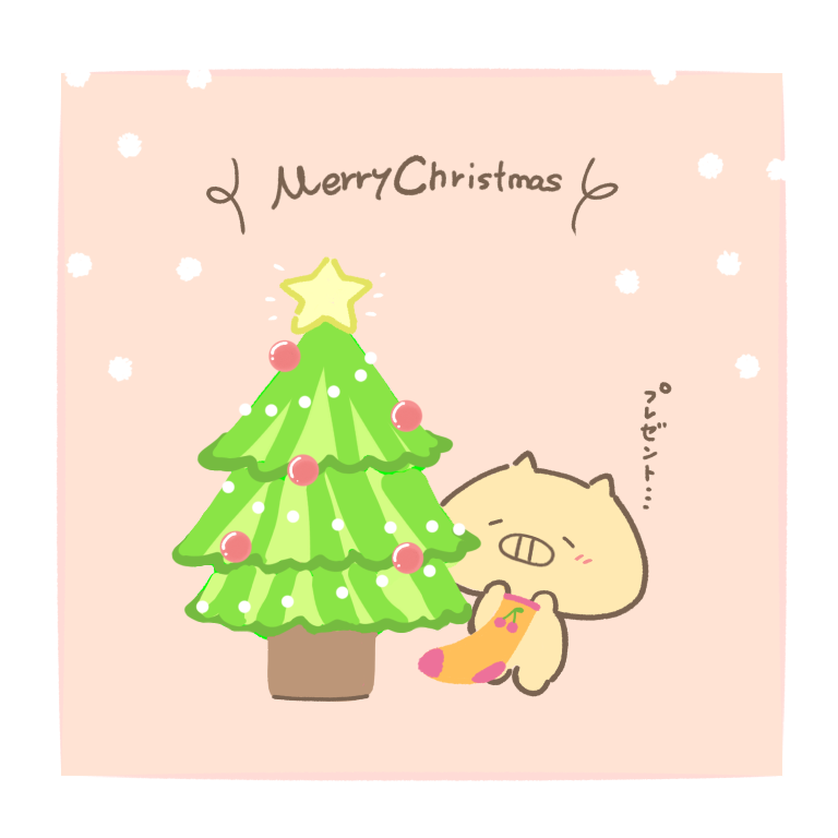 メリークリスマス!🎄 やっぱり今年もサンタさん待つブタオ #クリスマス #絵描きの輪 #気ままなブタオ #MerryChristmas