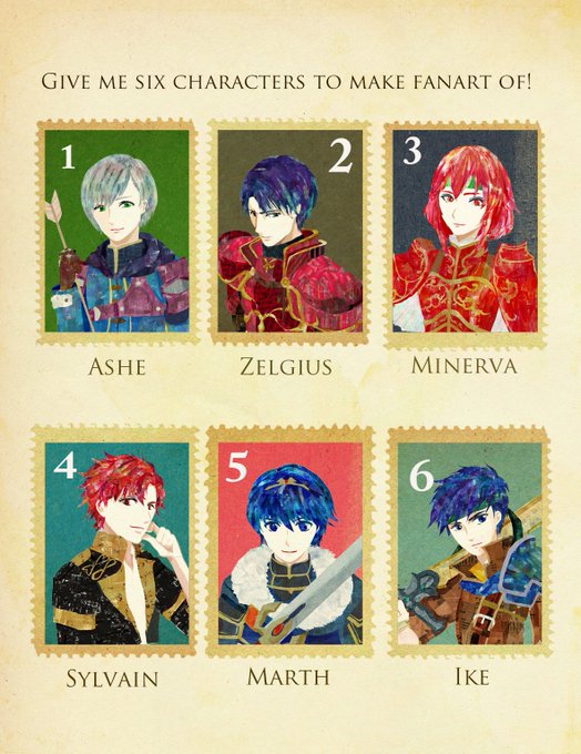 2か月以上かかってしまいましたが、以前募集した、フォロワーさんのFE推しキャラ絵がやっと完成しました‼️ 全員自分の推しのつもりで描きました。 リプ下さった方、楽しみに待って下さった方本当にありがとうございました😊✨ #SixFanarts