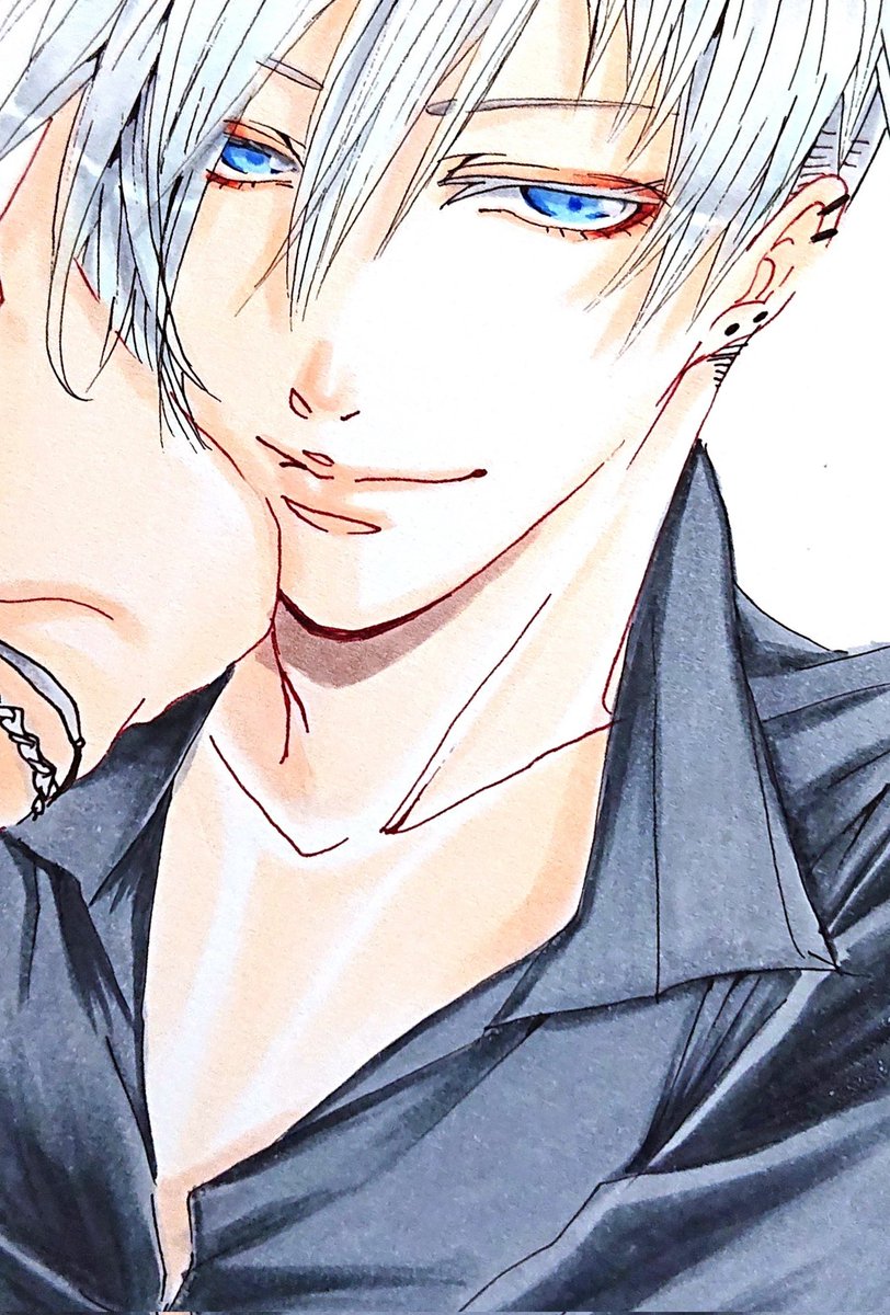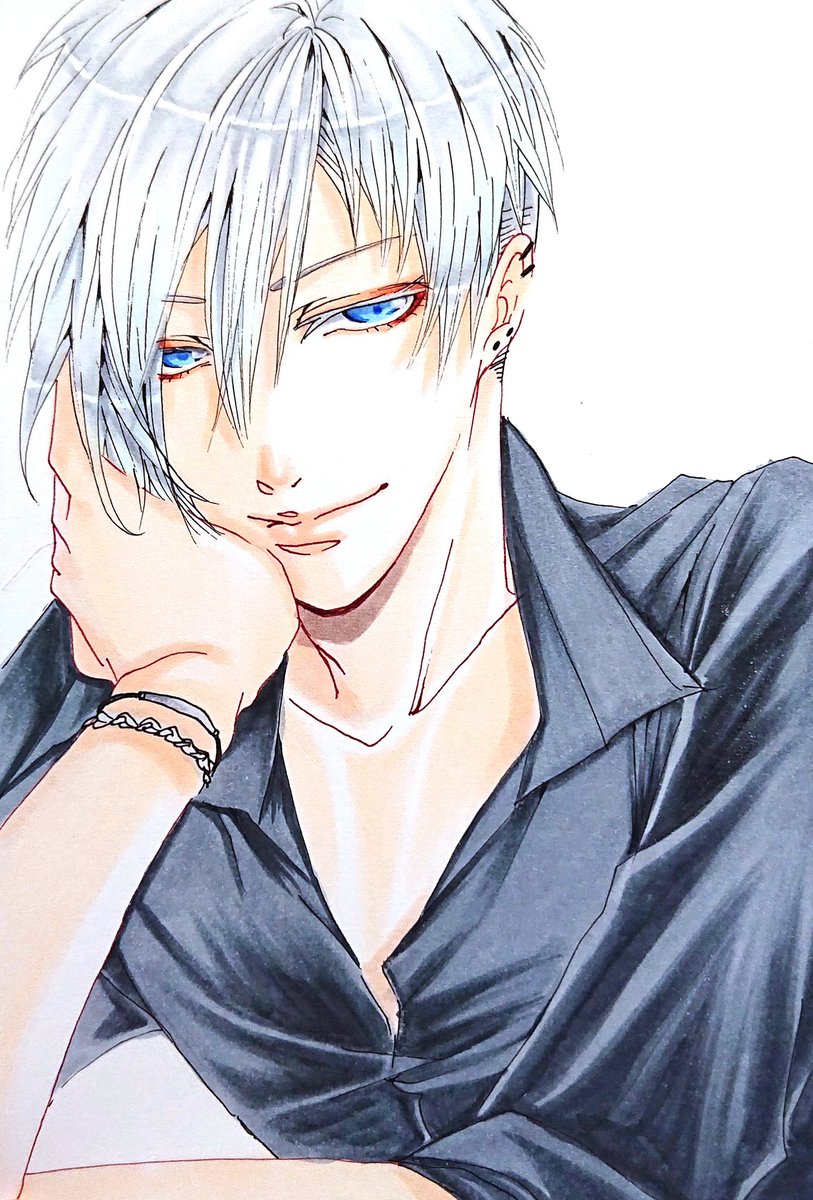 7 27 今度は男性。 タバコと黒髪(黒と青の組み合わせ)とストライプ柄好きなのー! #アナログイラスト #コピックイラスト 21/12/02 23:41