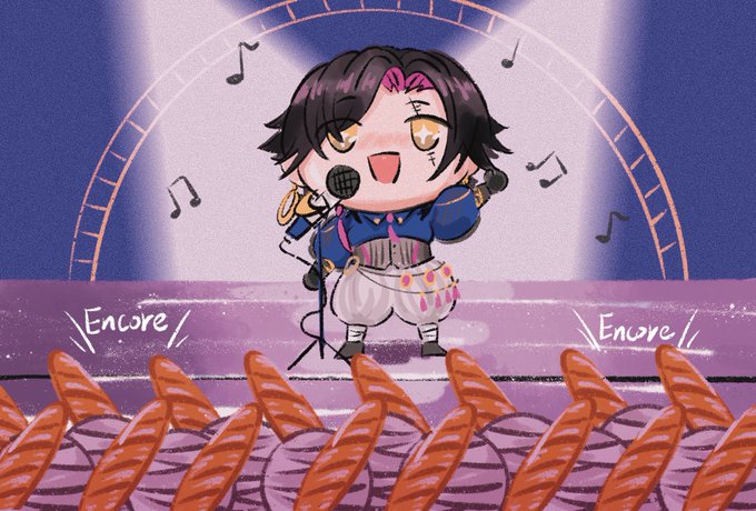 Congrats Zali 100K YT subscribe and 1st karaoke ヽ(●´∀`●)ノ The interesting thing is Vezkits use baguette as light sticks 🥖 🥖 🥖 🥖 (VOD link in reply) #zalillust #VezaliusBandage