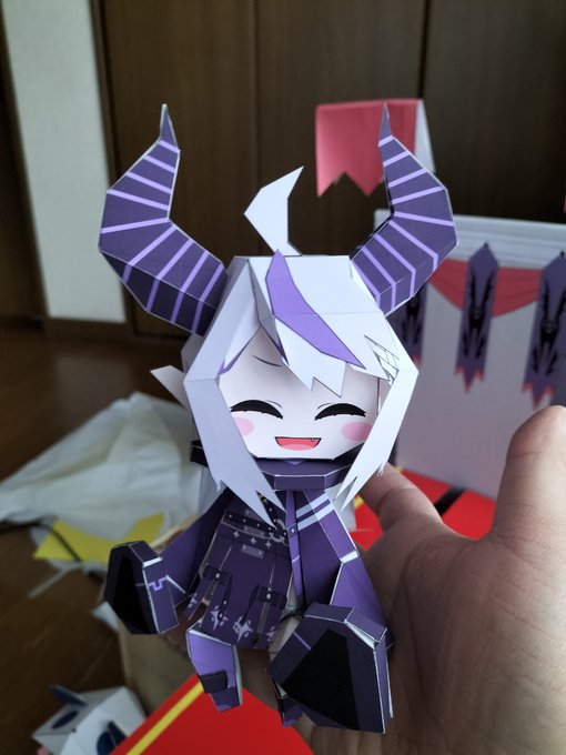 ペーパークラフト、ラプラスダークネスが完成しました。試作2号は修正箇所が分かりづらいと思いまして、いきなり完成品を投稿しました。 #laplus_artdesu #ペーパークラフト #C102