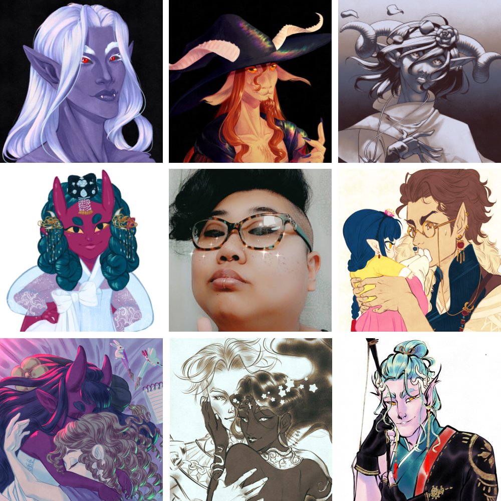 Happy #PortfolioDay! I'm Dani, a Korean American queer illustrator, and I love to draw ttrpg OCs, especially one that are in love💖💕✨