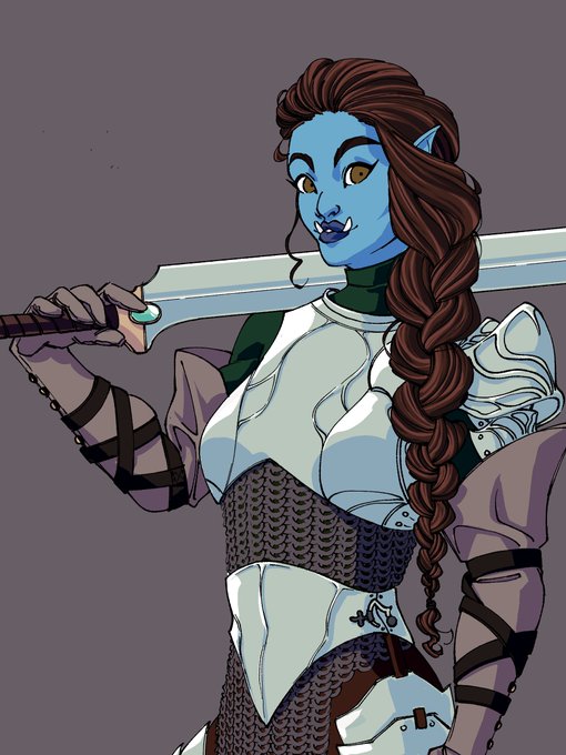 Happy #PortfolioDay! Hi I'm Dani and I draw a lot of girls and ttrpg character concepts. I'm big on bright colours and black backgrounds✨