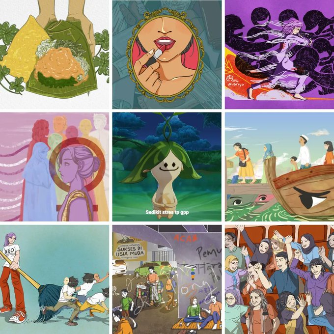 #artistwrapped2022 My #artvsartist version: :) Tahun ini aku udah nggambar lebih dari 20 ide (WAGILASIH) dan selama masa itu, aku nyadar ada 3 tipe karyaku-yang-aku-suka: (cont)