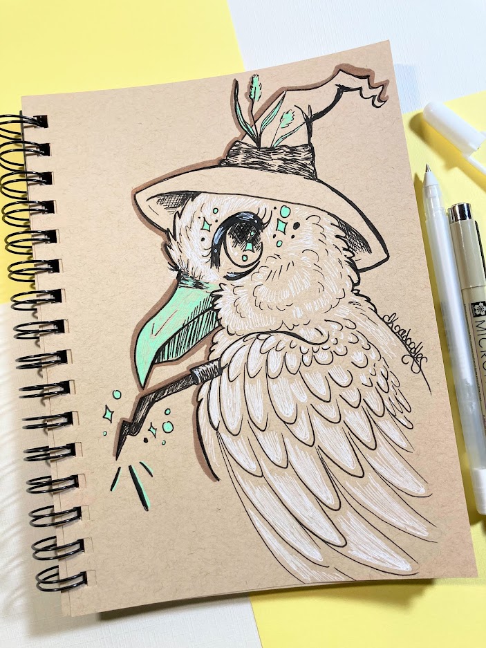 Witchy white raven for #inktober and #peachtober22 So sparkle! 🥺✨#cuteart #raven #witch #sketchbook