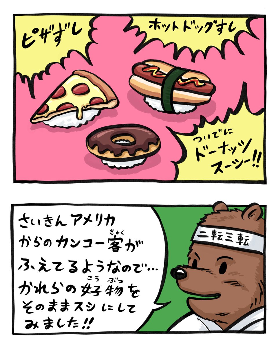 『二転三転!アメリカン寿司!』 #ダミーベアーズ #創作漫画 #漫画が読めるハッシュタグ