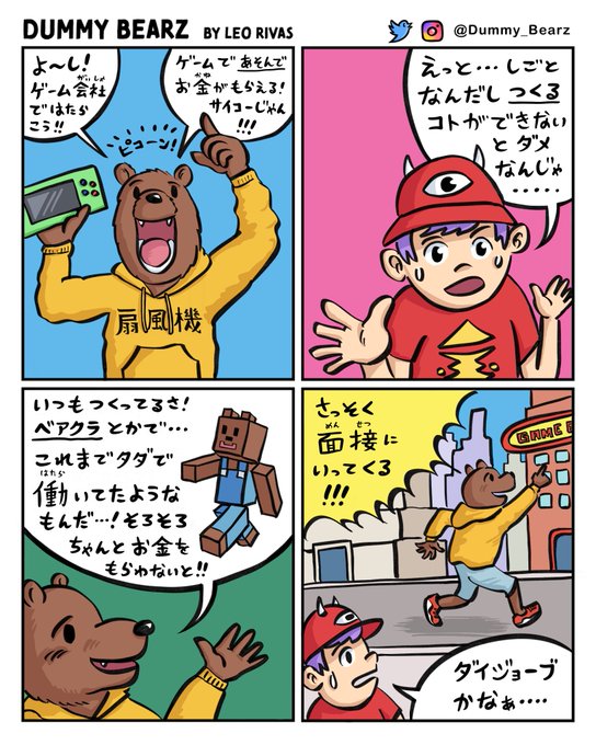 4 6 『夢のような仕事?👾』 #ダミーベアーズ #四コマ漫画 #4コマ漫画 #創作漫画 #漫画が読めるハッシュタグ 23/04/03 19:44