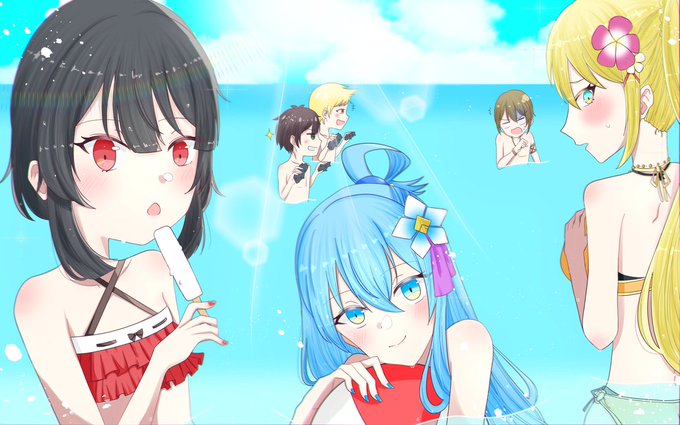 6 43 1.5周年おめでとうございます~!大好きなこのすば三人娘と男子組でお祝い🎉 #このファンイラストコンテスト 21/08/04 23:20