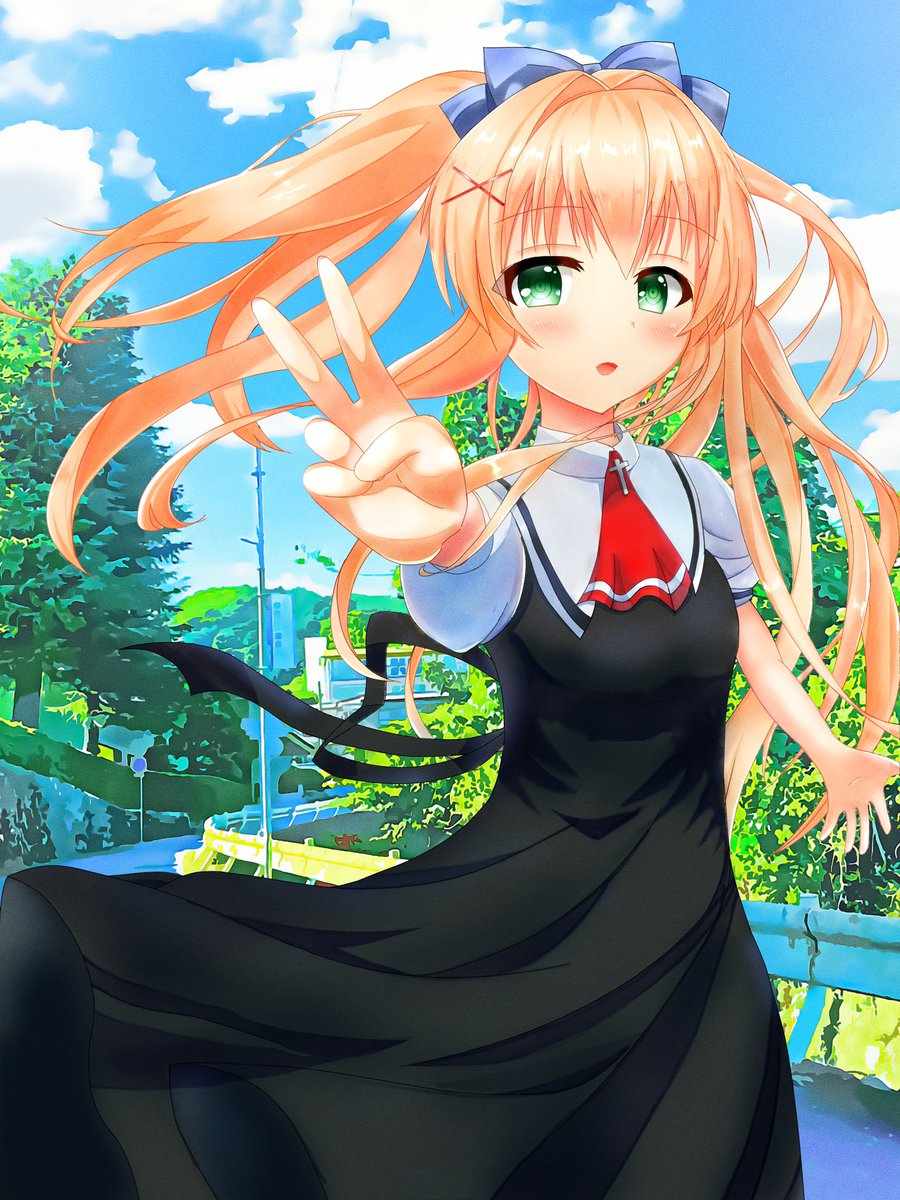 紬AIR制服Ver.描きました! 「むぎゅぎゅ!ぶいっです。」 #サマポケ #紬ヴェンダース #AIR
