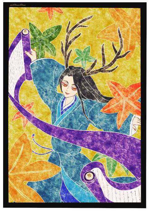 19 208 10月の花札 🍁🦌🔷 #イラスト #イラスト好きな人とつながりたい #創作イラ 22/10/07 17:19