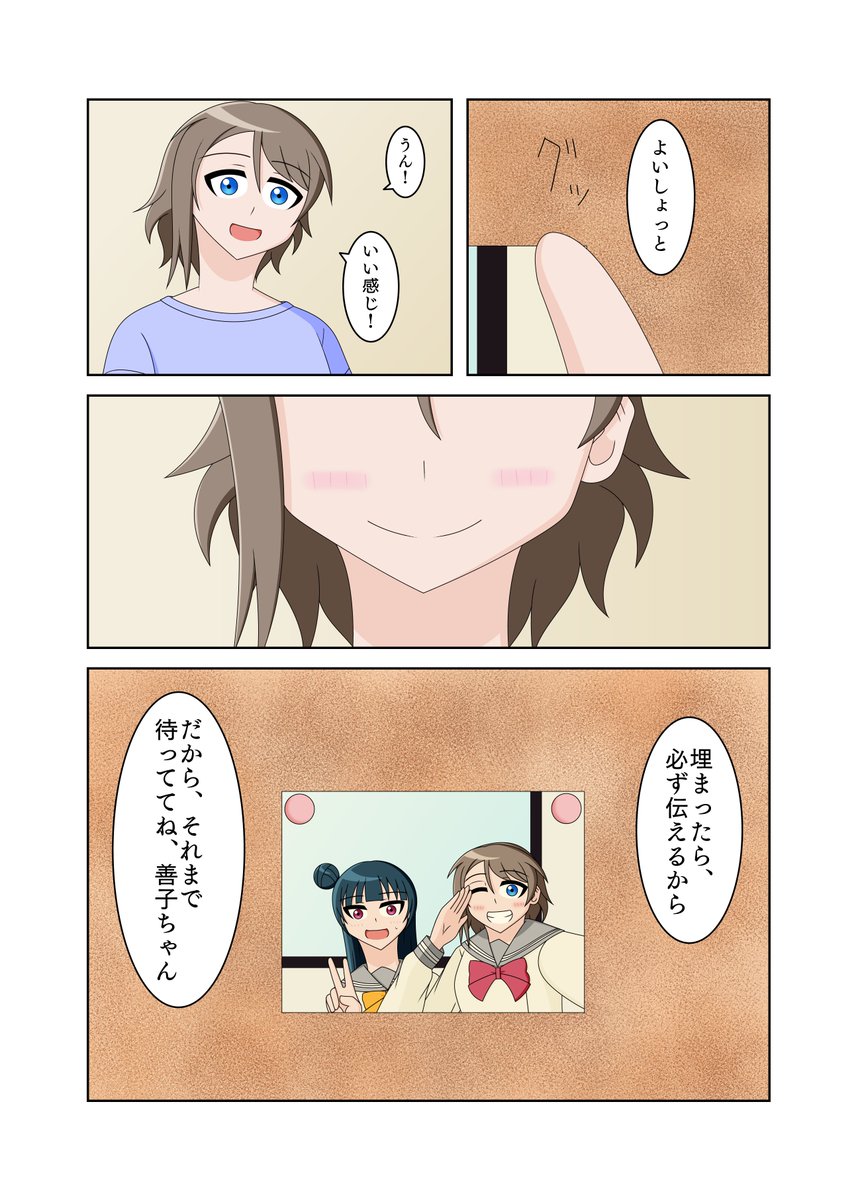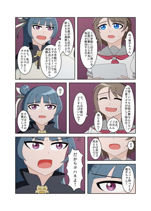「夢か現か幻か」 今年はアニメがスタートして盛り上がっているので クロスオーバーっぽい漫画を作りました。 ヨウとヨハはアニメよりコミック版を意識した二人にしています。 #津島善子生誕祭2023