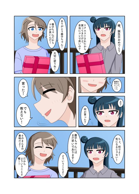 本日は記念すべき日なので津島親子について自分なりに描いてみました。 アニメ1期13話がベースです。 1枚目が善子視点、2枚目が善子ママ視点となってます。 津島善子さん、誕生日おめでとう!! #津島善子生誕祭2021