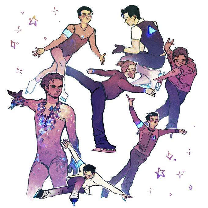 DBH figure skater AU ??? Idk I just wanted to draw them in some funky outfits. I've been sooo excited to post this, here it finally is !! #art #fanart #dbh #DetroitBecomeHuman #rk800 #rk900 #hankanderson #gavinreed #hankcon #reed900 #rk1700