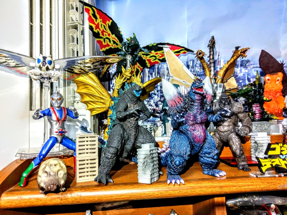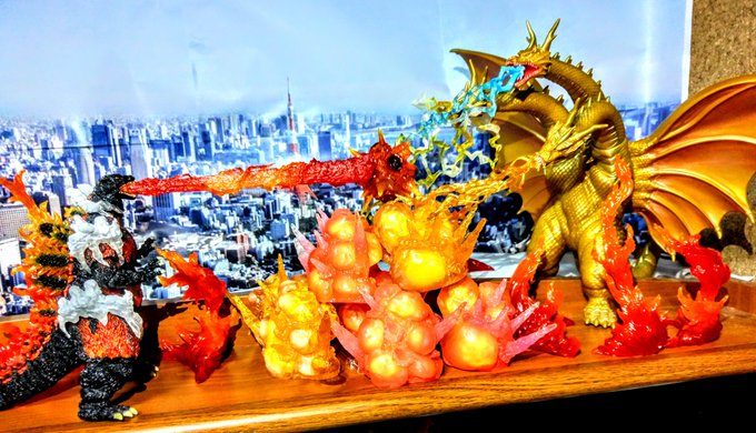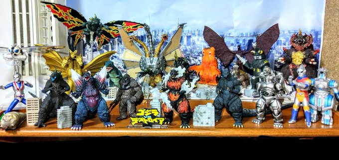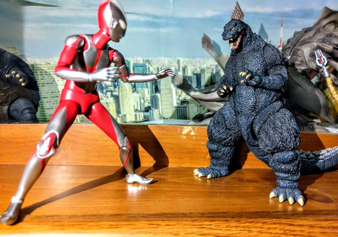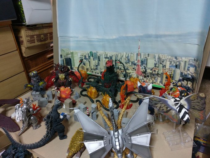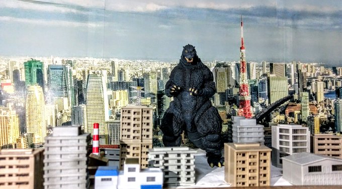 ちょっと綺麗に貼れる様になった背景 満点にはほど遠いけども 硬紙に貼ってるから自立出来て撮影の幅広がるんよねぇ #フィギュアーツ写真部 #フィギュア撮影友の会 #おもちゃ撮影会 #オモ写 #モンアツ #ゴジラ