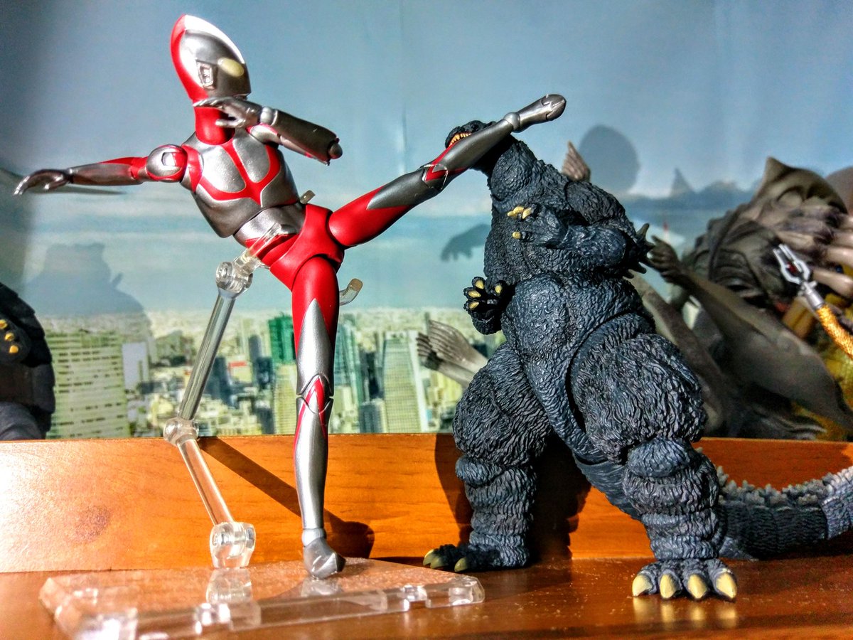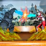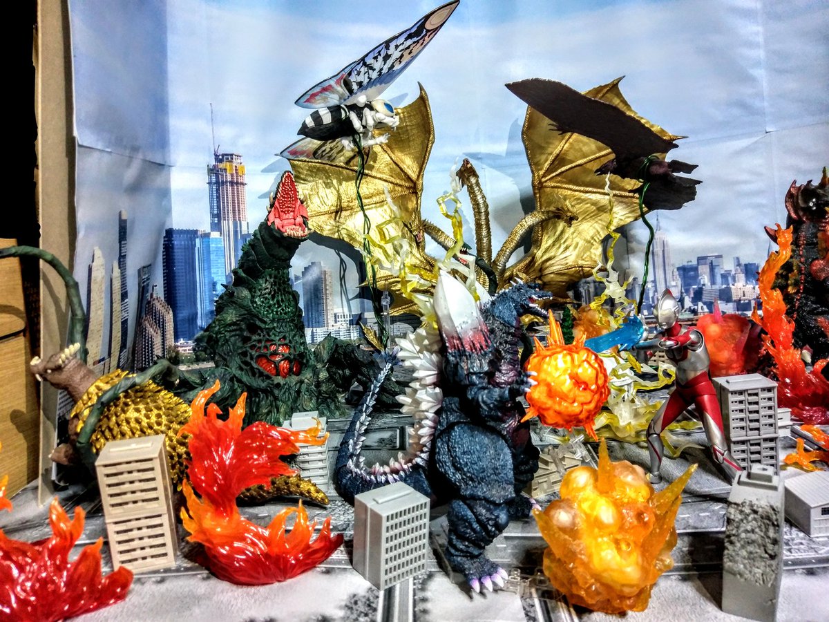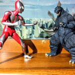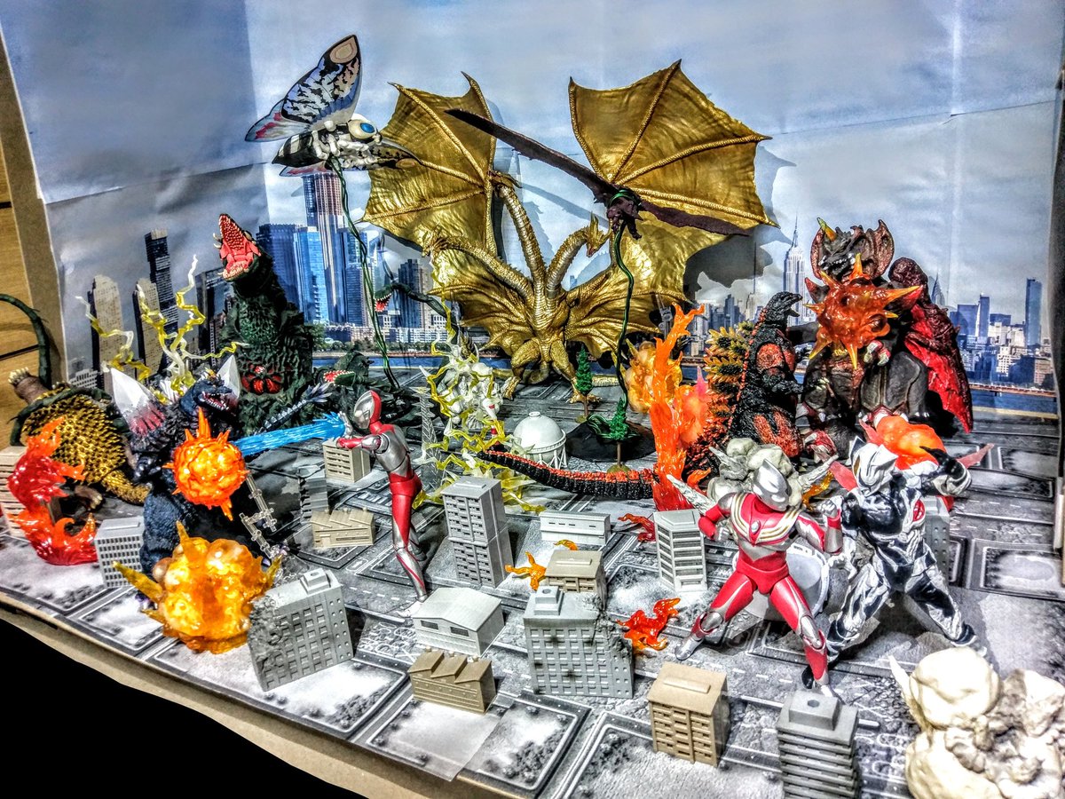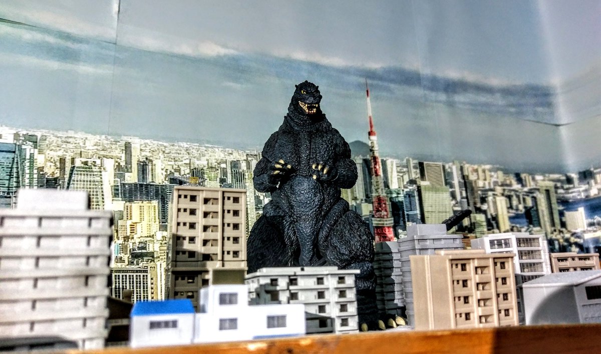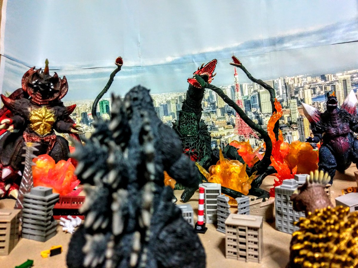 完成した撮影台でジオラマ~ やっぱ背景もっと綺麗に貼りたい そしてなにやらどうやらマグネットテープという神商品があるらしいから次はそいつを試す #フィギュアーツ写真部 #フィギュア撮影友の会 #おもちゃ撮影会 #オモ写 #モンアツ #ゴジラ