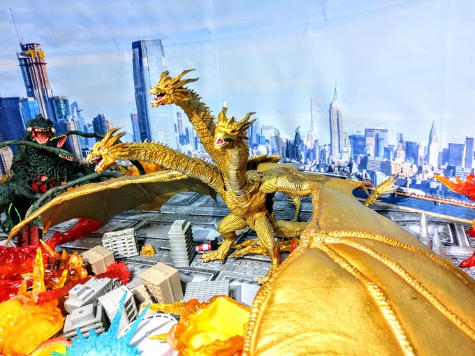 お友達が「ぜんっっっぜん融通利かん!」言うて譲ってきたキングギドラ2019 めっちゃくちゃ楽しいんだが‼️ 撮影台作ったからってのもあるけどあまりにも彩りとして完璧過ぎる うちの主役になりそうだわ✨ #フィギュアーツ写真部 #フィギュア撮影友の会 #おもちゃ撮影会 #オモ写 #モンアツ #ゴジラ