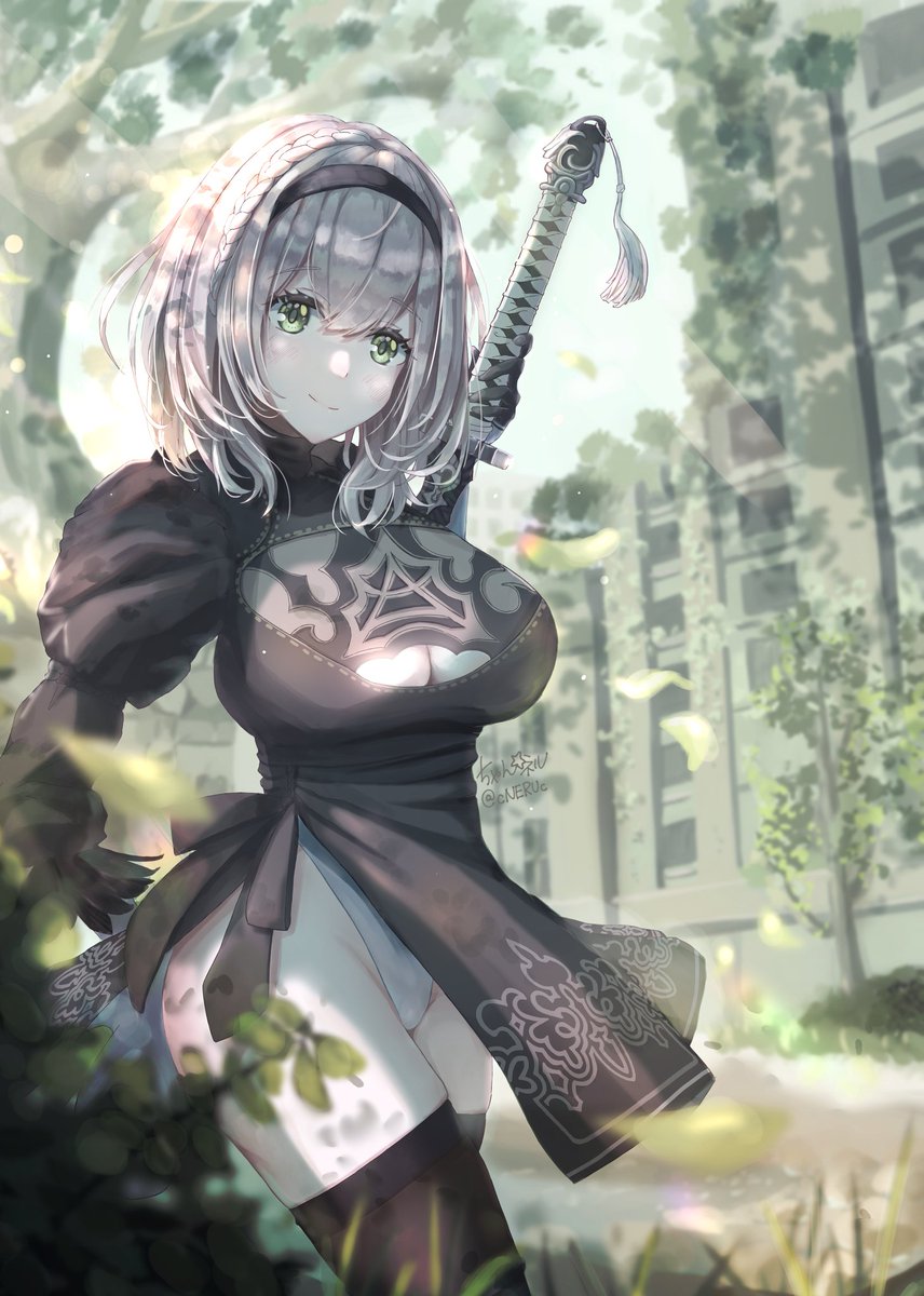 団長が2B(ニーアオートマタ)のコスプレしたら似合いそうだな~って思ったから描いてみたッ🎨 ニーアのアニメ化楽しみ #ノエラート #白銀ノエル #hololive #NieRAutomata #イラスト