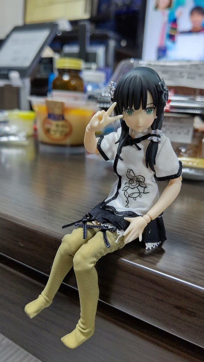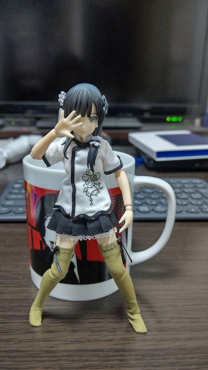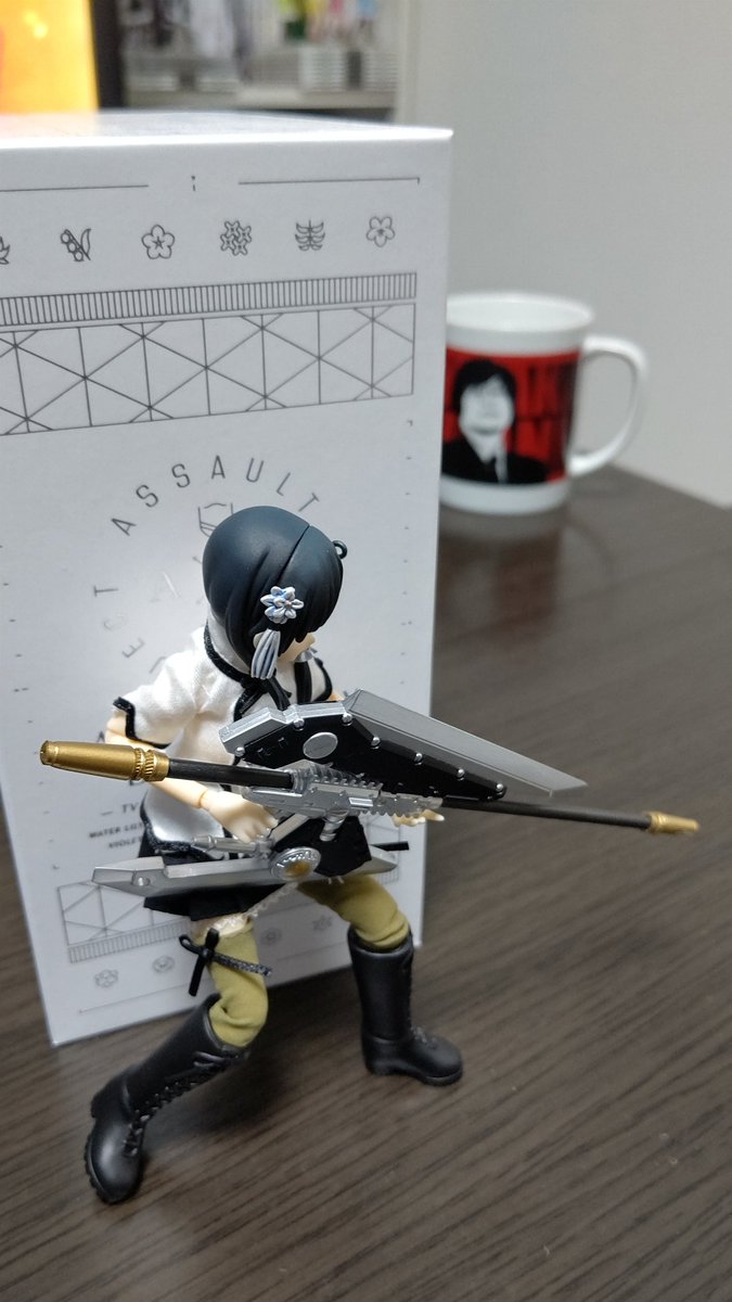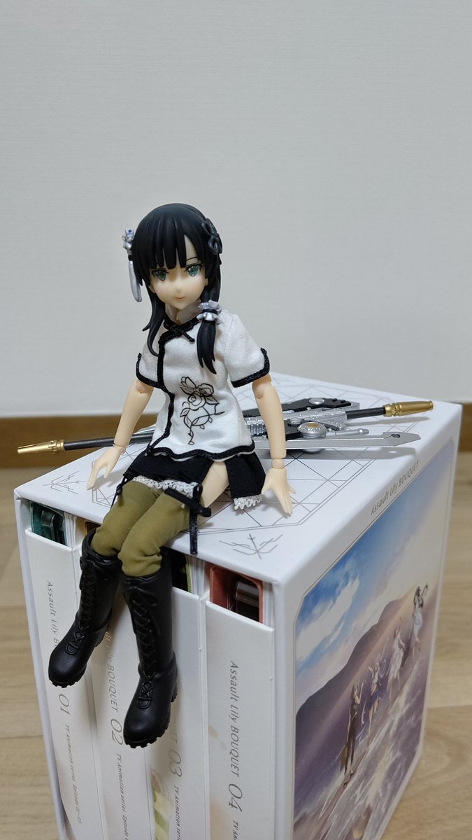うちにゆーじあさんがきてくれました! ドール初めてで関節おっかなびっくり動いてもらったけど、上手いことポーズ取ってくれたと思います! #アサルトリリィドール部