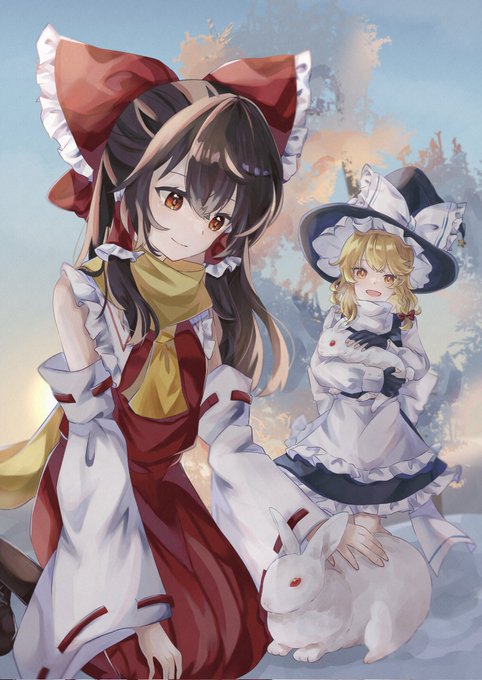 何とか三が日までに間に合いました、改めて今年も宜しくお願いします!#東方Project #博麗霊夢 #霧雨魔理沙 #イラスト