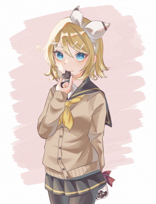 4 15 バレンタイン当日相手にチョコを渡せず自分で食べてしまう学生リンちゃんです #鏡音リン #イラスト 23/02/15 00:52
