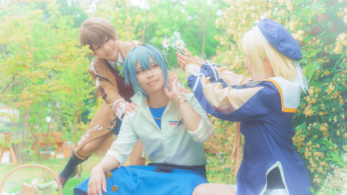 ※コス カ「俺にするよな?」 ア「私を選んでくれますよね?」 リ「どっちも選べないです〜!!」 な三角構図少女漫画表紙ごっこ