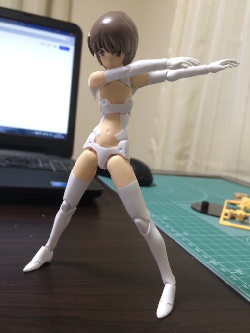 この胴体捻りパーツ、すげぇ優秀だわ。 ラブコメのキャラで言うと、滑り台コースのツンデレ幼馴染み感半端ないw どーよ?この「ほら、早く行くわよ」ってポーズw #創彩少女庭園 #創彩写真部