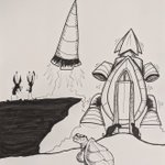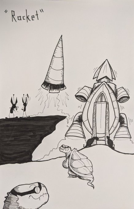 Inktober Day 16: Rocket A bit of a sci-fi take on 'The Tortoise and the Hare'; this time it's a rocket race. #inktober2020 #inktober2020day16 #scifi #Inktober
