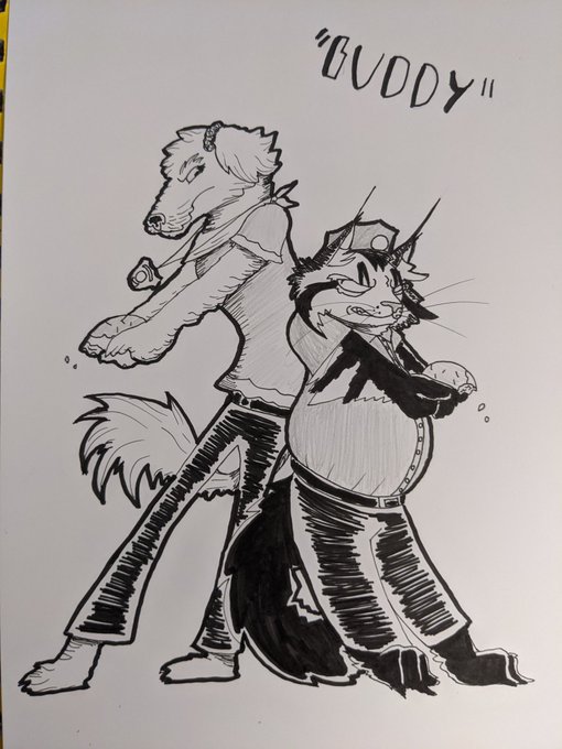 Inktober Day 25: Buddy Decided to draw my cat & dog as a buddy-cop duo. I'm very happy with the result. #inktober2020 #Inktober #inktober2020day25 #inktober2020buddy #cats #dogs
